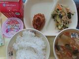 今日の給食献立メニューは「ご飯・牛乳・鶏肉のから揚げ・もやしと笹かまの中華サラダ・みそワンタンスープ・お祝いデザート」です。今日は「から揚げ」についてのお話です。から揚げが嫌いという人を探すのは、四つ葉のクローバーを探すくらい難しいかもしれません。給食の「から揚げ」は、外はカリッ。中はジューシー。この食感が人気の理由です。今日の給食は人気メニューということで、3年生のみなさん、ご卒業おめでとうございます!と給食センターの職員からもエールが送られているようでした。