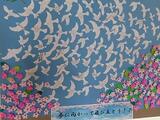 昇降口前に卒業を間近に控えた3年生へ、2年生が心を込めてメッセージを掲示しました。メッセージは未来へはばたく鳩のイラストにメッセージを書いて飾りました。青空に向かって羽ばたくハトは、まさにこれから新しい世界へ旅立つ3年生の姿そのものです。掲示したメッセージには、感謝の言葉や応援の気持ちがあふれていました。2年生にとって3年生は、いつも少し先を歩き、道を示してくれる存在でした。少しさみしそうな表情を浮かべる2年生の姿も見られました。それだけ、3年生の存在が大きかった証です。未来へはばたく鳩のように、それぞれの夢や目標に向かって力強く進んでいく3年生。皆さんがこれまで築いてきた努力と絆は、これからも西中の誇りです。新しいステージでも、自分らしく、堂々と。2年生一同、心からの感謝とエールを送ります。