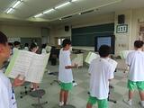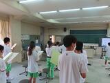 1年生は、来月行われる初めての音楽祭に向けて、合唱練習に一生懸命取り組んでいます。音楽室からは、CDの音程に合わせて元気な歌声が響いてきました。まだ、最初ということもあって、声が揃わず戸惑う場面もありましたが、何度も繰り返し歌ううちに、少しずつ音程が合って来ているように感じました。また、パートリーダーからは「もう少し大きな声で歌いましょう」や「音程をよく確認しながら歌いましょう」など、頼もしい一面も見られました。真剣な表情の中にも、時折笑顔がこぼれ、とてもいい雰囲気の中で熱心に練習に取り組んでいて感心していました。