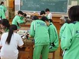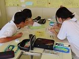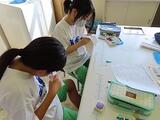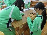 1年生は家庭科の授業で、裁縫に取り組んでいます。今回はスナップ付けに挑戦しました。慣れない作業に苦戦しながらも、友達と協力し合い、熱心に取り組む姿が見られました。活動中は笑顔があふれ、楽しそうに学習する様子が印象的でした。