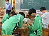 2年生は技術の授業で、はんだを使った作業に取り組みました。生徒は、安全に気を付けながら、はんだごてを慎重に扱って作業を進めていました。はじめは緊張した様子も見られましたが、友達と声を掛け合いながら協力して作業を行い、次第に楽しそうな笑顔が広がっていきました。「きれいについた!」「何とかできた!」と、達成感のある声もあがっていました。今回学んだはんだ付けの技術は、これからの制作活動でとても大切になる基本の作業です。今日の経験を生かして、これからの作品づくりにも意欲的に取り組んでほしいと思います。