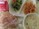 今日の給食献立メニューは「バターロールパン・牛乳・ミートソーススパゲティ・カラフルサラダ・クリームシチュー」です。今日は「スパゲティ」についてのお話です。スパゲティはイタリア発祥ですが、日本では明治時代から少しずつ食べられるようになり、昭和には家庭の人気料理になりました。ミートソースはアメリカ経由で伝わり、日本で親しまれるようになった洋風メニューです。パンやシチューとの組み合わせは、まるで洋食屋さんのランチのようですね。