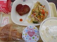 今日の給食献立メニューは「クロワッサン・牛乳・ハート型ハンバーグ・りっちゃんサラダ・クリームシチュー・バレンタインデザート」です。今日の給食には、河南西中学校3年生の一番人気だった「クロワッサン」が出ました。また、サラダ部門で、一番リクエストの多かった「りっちゃんサラダ」も出ました。生徒は小学校の頃から食べている馴染みある給食だったので、小学校のときのことを思い出しながら食べている様子も見受けられました。今日も美味しい給食ごちそうさまでした。