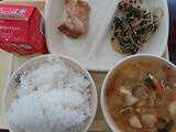 今日の給食献立メニューは「ご飯・牛乳・鶏肉のピリ辛焼き・ほうれん草のツナ和え・どさんこ汁」です。今日は「どさんこ汁」についてのお話です。「どさんこ汁」は、北海道をイメージした具だくさんのみそ汁です。じゃがいも・とうもろこし・にんじん・たまねぎなど、北海道の大地の恵みがたっぷり入っています。これらの野菜には、ビタミンCや食物繊維が豊富で、風邪予防や腸内環境の改善に役立ちます。さらに、みそには発酵食品ならではの乳酸菌が含まれ、腸を元気にして免疫力を高めてくれます。「どさんこ」とは北海道生まれを意味する言葉。寒い地域で育まれた栄養満点の味わいを、温かい汁で感じられる一品です。