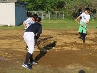 本日16時40分頃から、野球部の1年生6名が、昨日の降雨により轍だらけになった校庭東側の駐車場の整地作業を行ってくれました。放課後の時間にもかかわらず、黙々とレーキを使って校庭を丁寧に平らにする姿がとても印象的でした。一面を丁寧に仕上げようとする姿勢から、真面目さと責任感が伝わってきました。体育祭や日々の活動のために、こうした支えがあることに感謝の気持ちでいっぱいです。野球部1年生の皆さん、本当にありがとうございました!