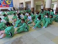 本日、1年生は松島体験学習を行いました。朝、松島に到着した後、まず入所式が行われ、施設の方から施設内の案内や、松島の歴史・自然についての説明を受けました。午前中は、宮戸島でのウォークラリーに挑戦しました。晴天にも恵まれ、生徒たちは地図を片手に、自然を感じながら元気いっぱいに島内を歩き回りました。各ポイントにはクイズがあり、生徒は一生懸命、答えを探そうと協力して取り組んでいる様子でした。昼食は、施設内の食堂で、仲間と楽しく会話をしながらとりました。午前中の活動の疲れも見せず、笑顔で食事を楽しむ姿が見られました。午後からは、防災学習として、簡易シェルターの設営体験を行いました。チームで協力しながら設営を進め、防災に関する講話や体験活動も真剣に取り組みました。この体験を通して、自然への理解や防災意識をさらに高めることができました。最後に退所式を行い、学びとたくさんの思い出を胸に学校へ戻りました。一日を通して元気いっぱい活動する生徒たちでしたが、帰りのバスでは少し疲れた表情を見せる姿もありました。それだけ充実した一日を過ごせた証であると感じることができました。一年生の皆さん。お疲れ様でした。