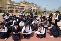 1時10分過ぎに東京ディズニーランドに到着しました。学級ごとに記念写真を撮影してから入場となりました。集合は8時となっています。