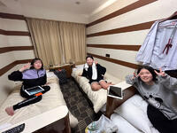 全員8時までに集合しました。その後ホテルまで約15分歩き、無事到着しました。体調が良くない生徒はいませんが、だいぶお疲れのようです。